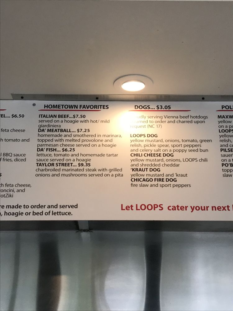 Loops, a restaurant specializing in hot dogs with a Greek-American twist, offers a variety of delicious dishes with convenient options like delivery and takeout. Located in Columbus, OH, Loops' menu features salads, original creations like GreekTown and Fetafire hot dogs, as well as favorites like Jackson Street and Buffalo Gyros. Customers praise the fast service, friendly staff, and mouth-watering dishes such as the Chicago-style Loops Dog and Gyro Roll. The standout item, according to many, is the Chicago dog paired with their unbeatable fries. Though some patrons find other menu items slightly lacking in comparison, the overall consensus is that Loops delivers on its promise of flavorful, satisfying eats. With affordable prices and generous portions, this no-frills eatery is a solid choice for a casual lunch or dinner.